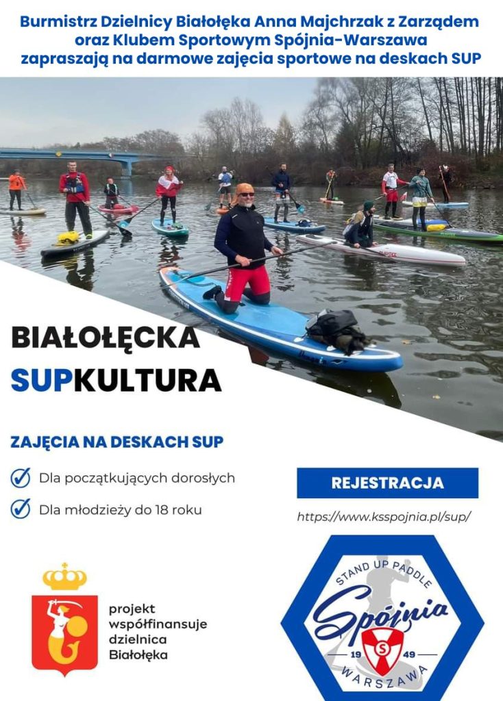 Projekt współfinansuje Dzielnica Białołęka, co pozwala na organizację zajęć całkowicie bezpłatnie dla uczestników. Dzięki temu każdy może spróbować swoich sił w sportach wodnych bez ponoszenia kosztów!